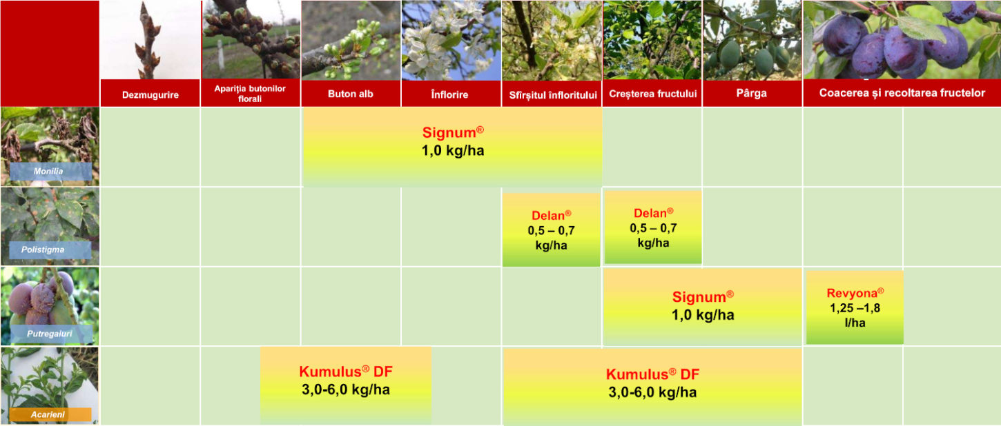 Schema de protecție a prunului cu produsele BASF: