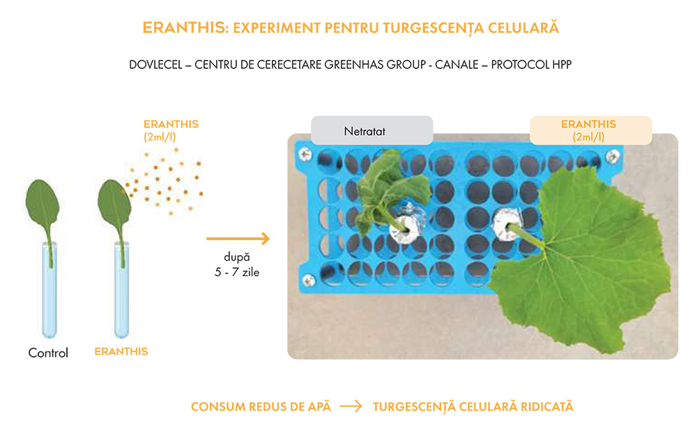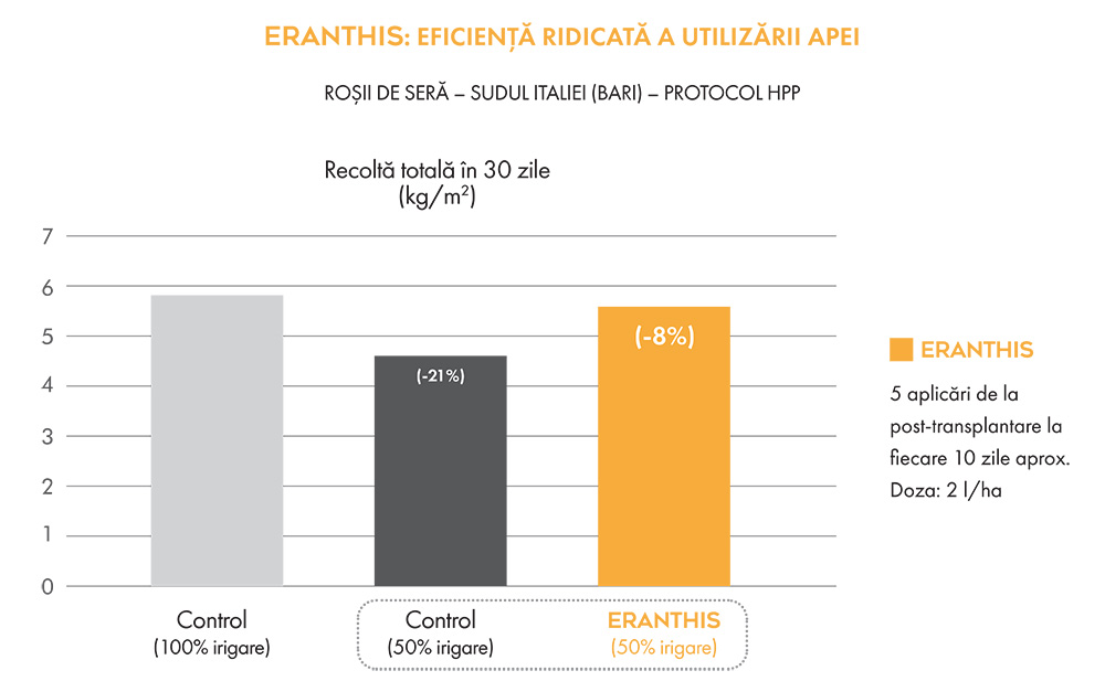 Aplicarea ERANTHIS minimizează efectele condițiilor nefavorabile de mediu și ajută plantele să își manifeste cel mai bun potențial de producție prin creșterea protecției celulare și îmbunătățirea eficienței utilizării apei (WUE).
